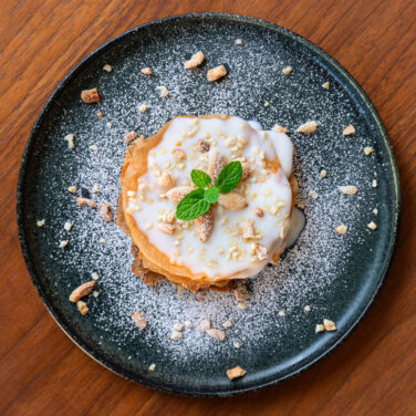 アラビア語で「宝石」を意味するジャウハラは、その名の通り見た目も華やかな、モロッコのミルフィーユともいえるスイーツです。揚げたワルカ生地(またはパートフィロ)を幾層にも重ね、間にオレンジフラワーが香るミルクソースを挟むことで、生地のサクサク食感とソースの華やかな香りをどちらも楽しめる、上品なスイーツに仕上がります。
