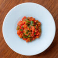 名前に反して作り方はシンプルで、素揚げしたナスに切り込みを入れ、トマトやタマネギなどの具材を詰めるだけです。香辛料もさほど使わないため、シンプルにトマトとナスの味を楽しめます。