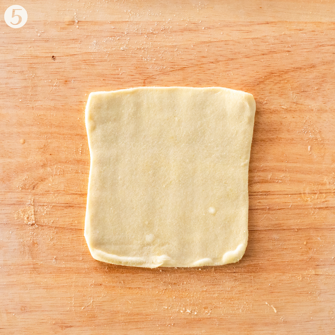 - 生地を再び12㎝四方程度の大きさに伸ばす。