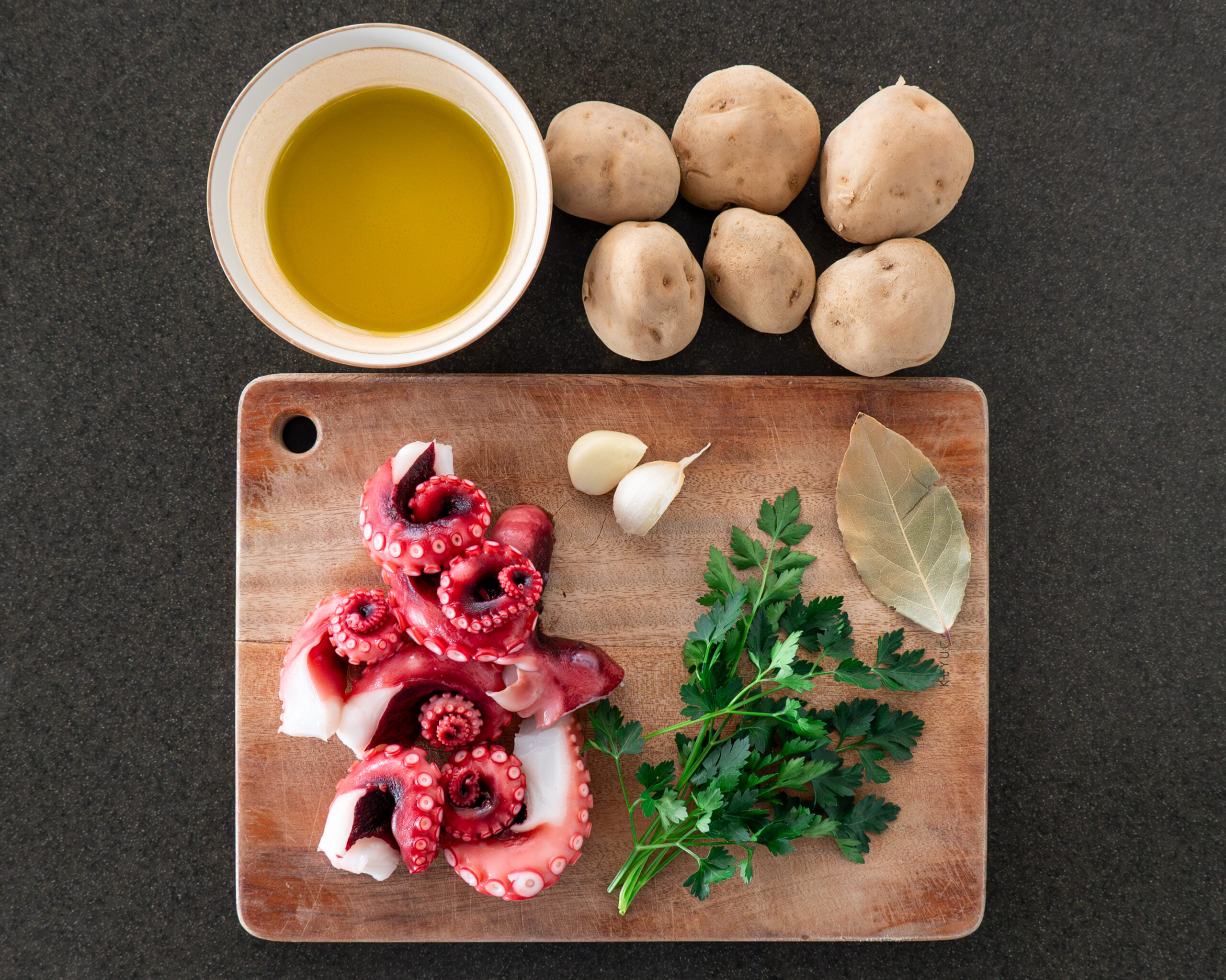 訳すと「タコのラガレイロ風」となりますが、ラガレイロとはオリーブの搾油に関わる人のこと。そこから転じて「オリーブオイルをふんだんに使うスタイル」を表すようになりました。